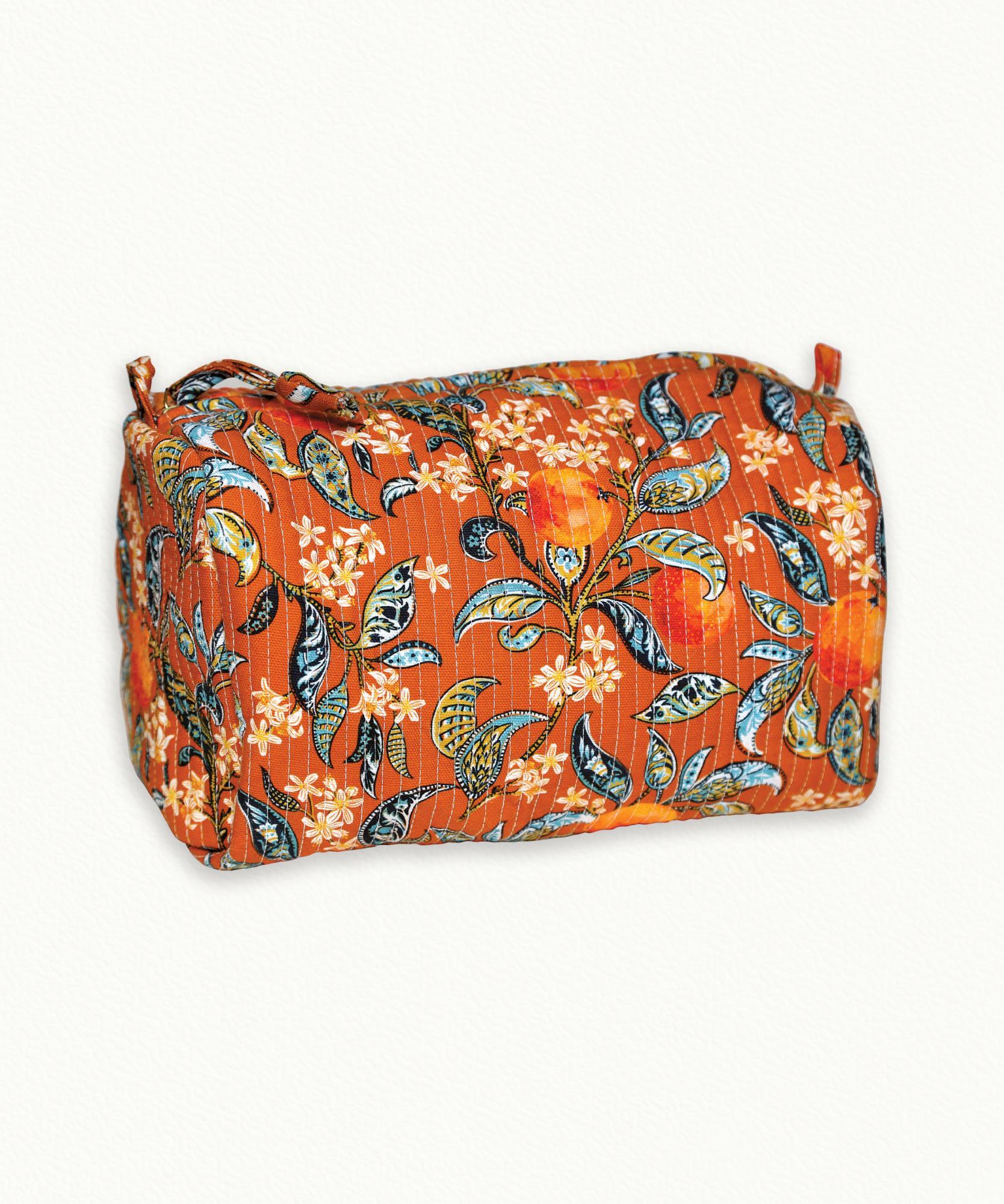 Diese Kosmetiktasche aus orangefarbener, weich gepolsterter Baumwolle mit Orangenblüten-Print fängt den sonnigen Geist unseres ikonischen Duftes ein, der gerade neu interpretiert wurde. Das wasserabweisende Nylonfutter und der Reißverschluss schützen Ihre Beauty-Essentials. Hier in der großen Variante, passt sich diese Kosmetiktasche allen Ihren Bedürfnissen an – von der täglichen Routine bis hin zu längeren Aufenthalten.
