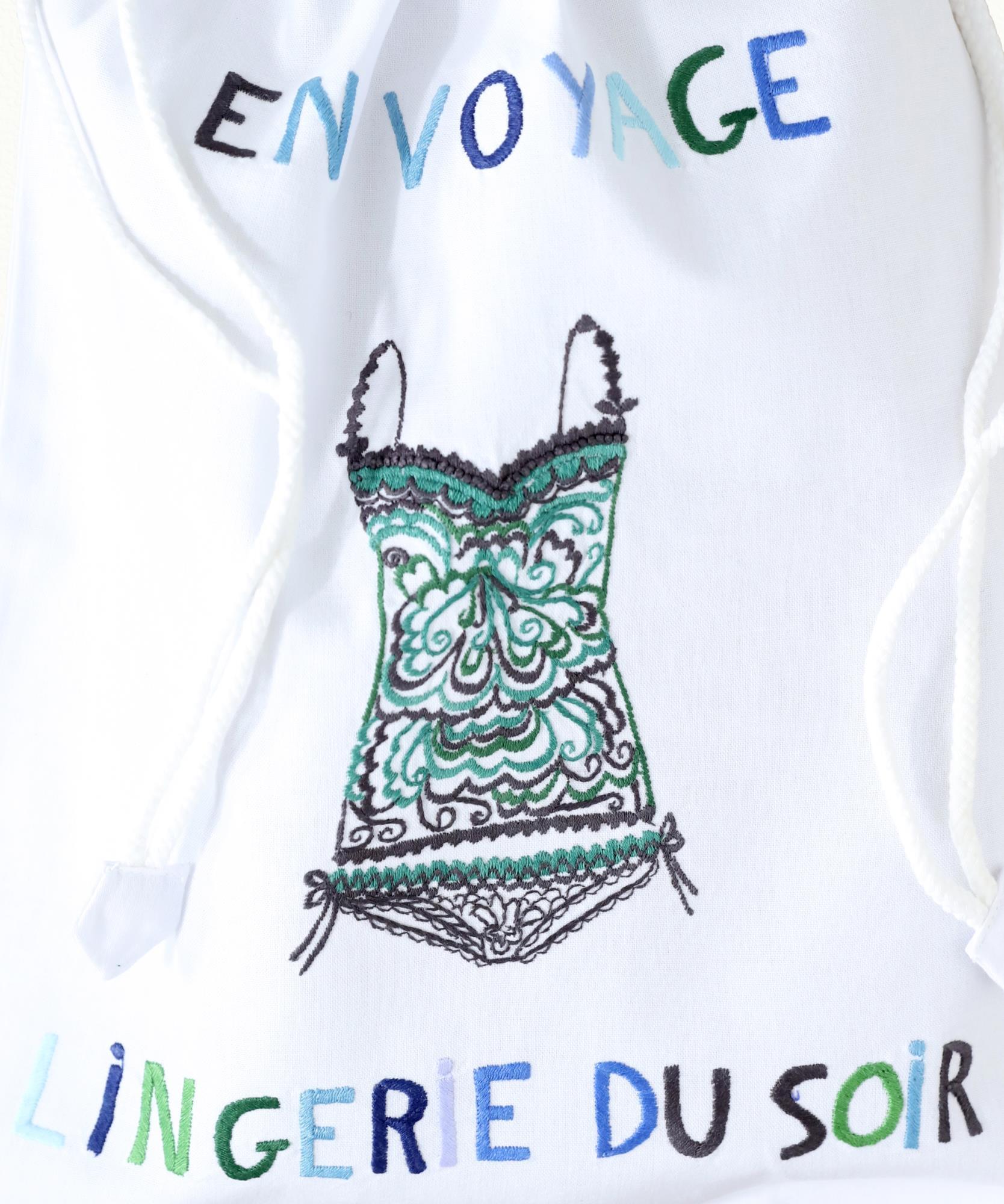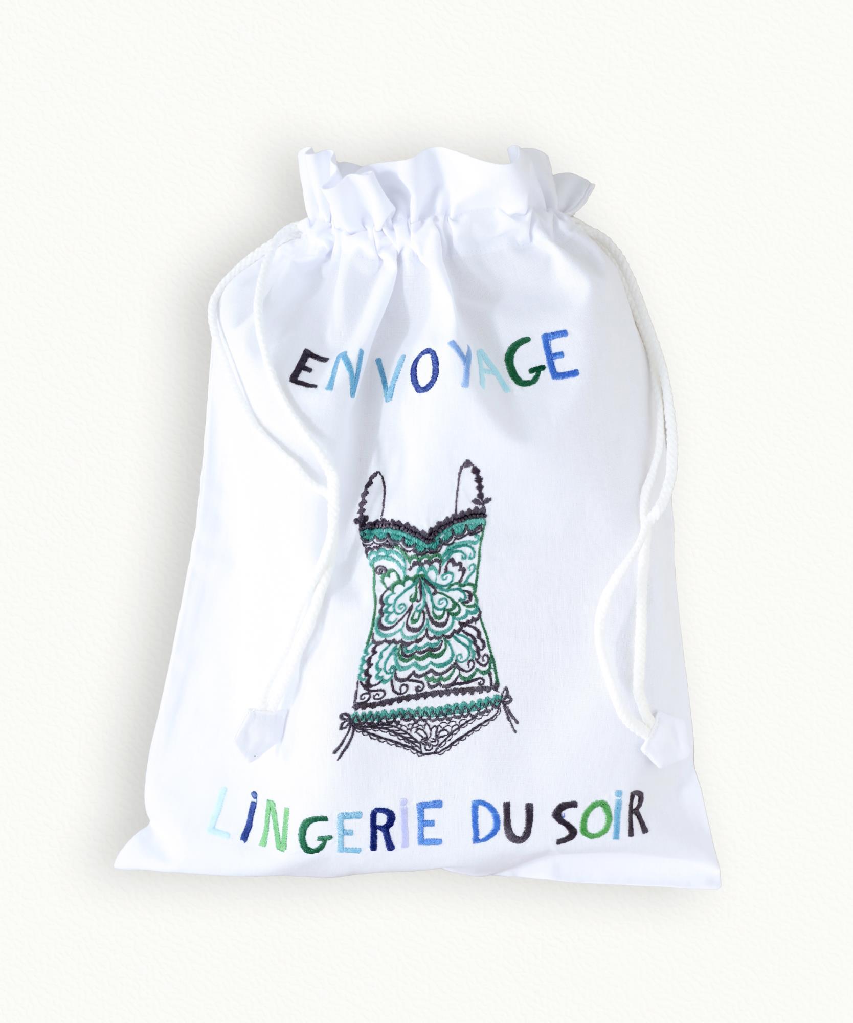 Ein Beutel mit zarter Handstickerei zum Aufbewahren Ihrer kostbaren Unterwäsche.