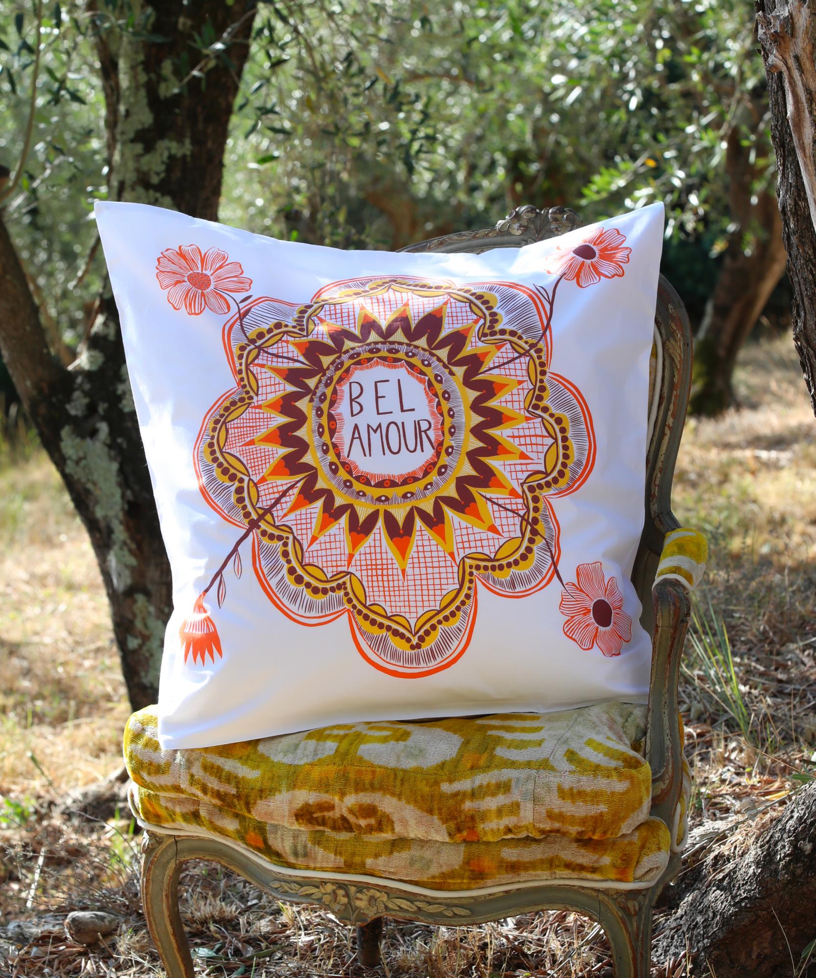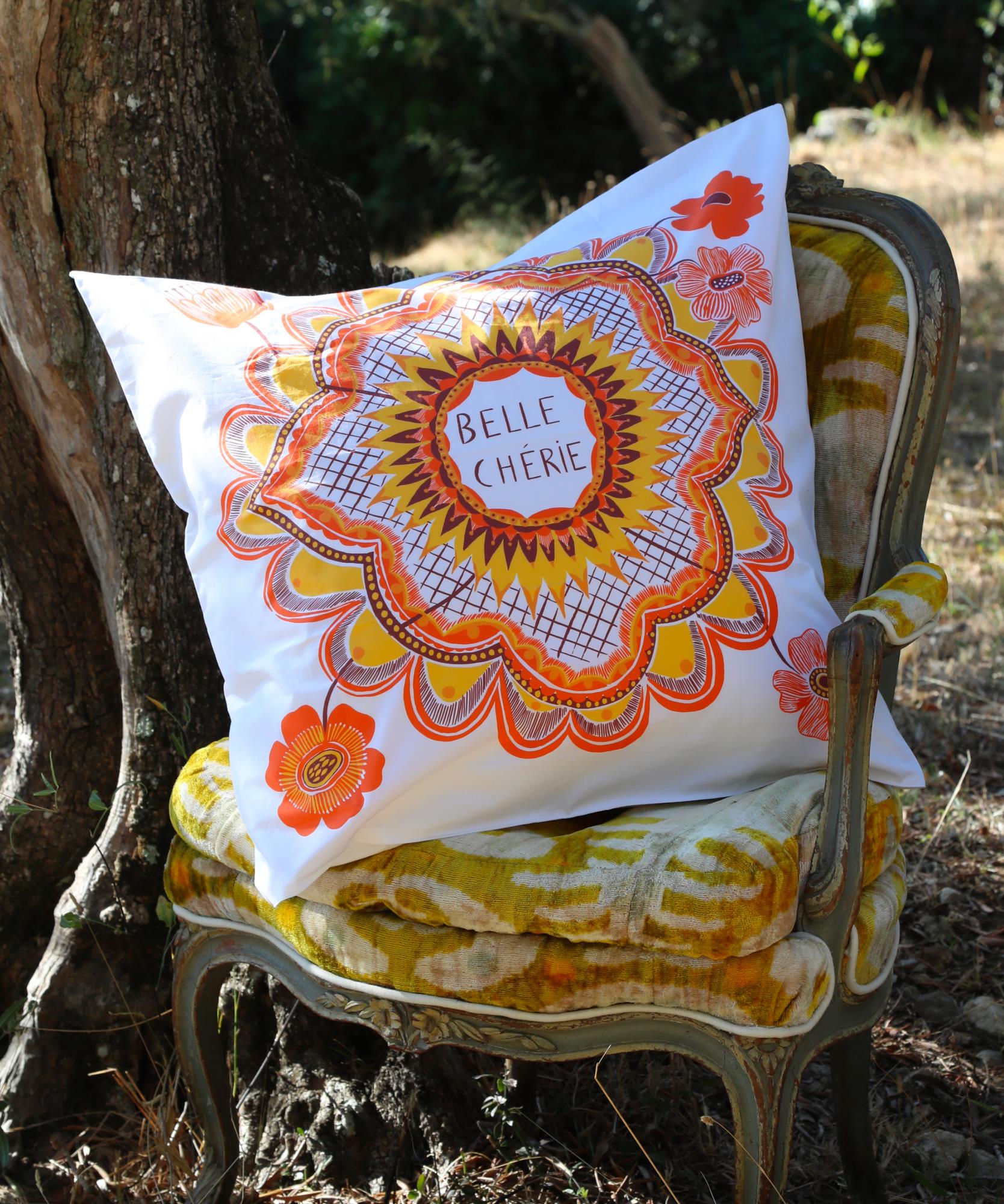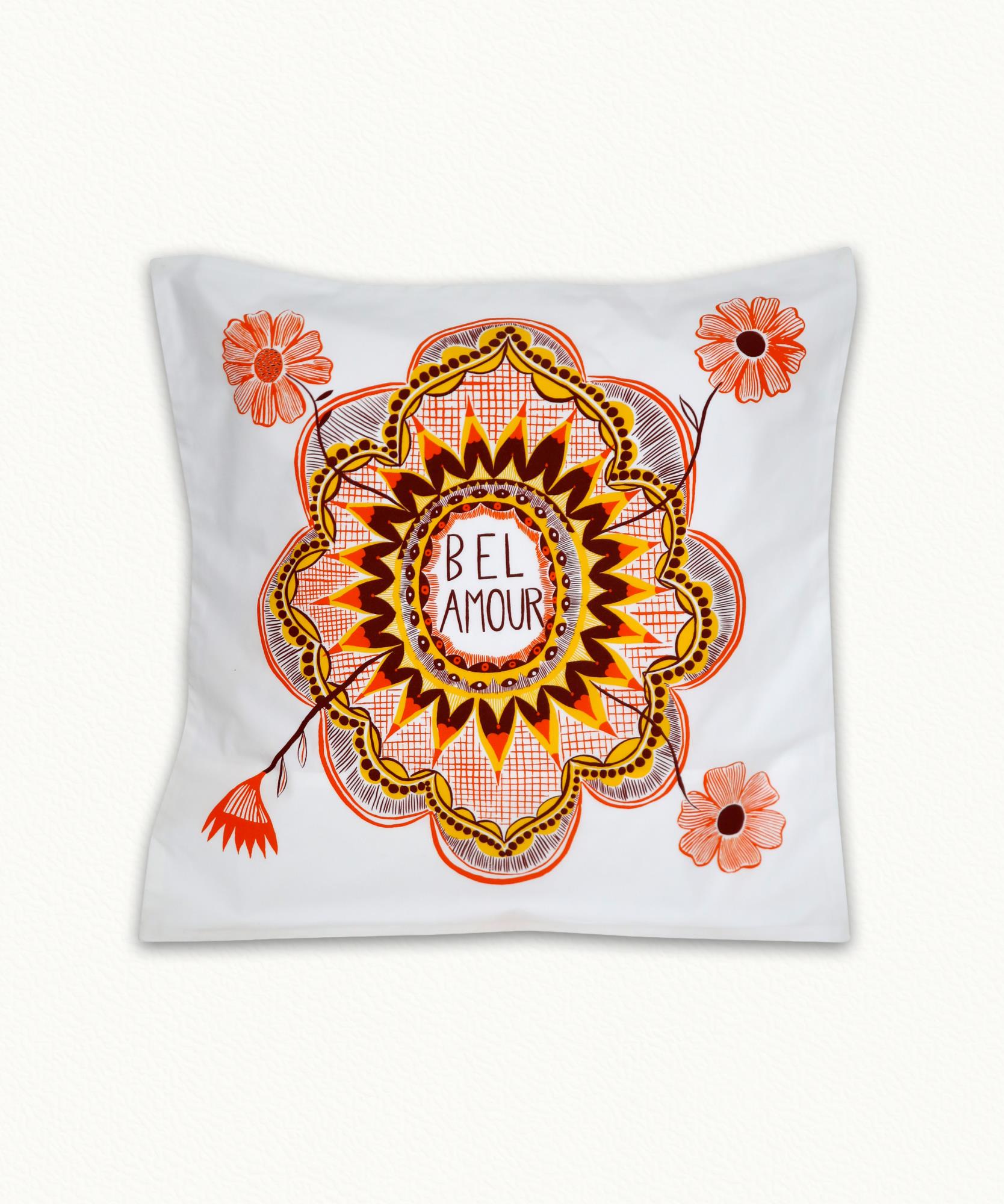 These square pillowcases in soft cotton (65 × 65 cm) whisper their tender messages even into your dreams, promising peaceful nights. Their floral pattern in warm colors brings a poetic softness to the bedroom.