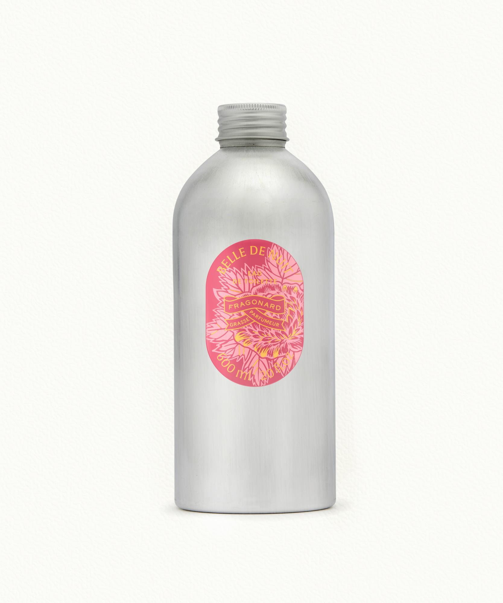 Belle de Nuit is an original, deep rich harmony of flowers and fruit on a warm velvety bottom note of musk. This aluminum container can be used to fill the spray bottle. The Eau de Toilette from this refill will be well stored away from light.