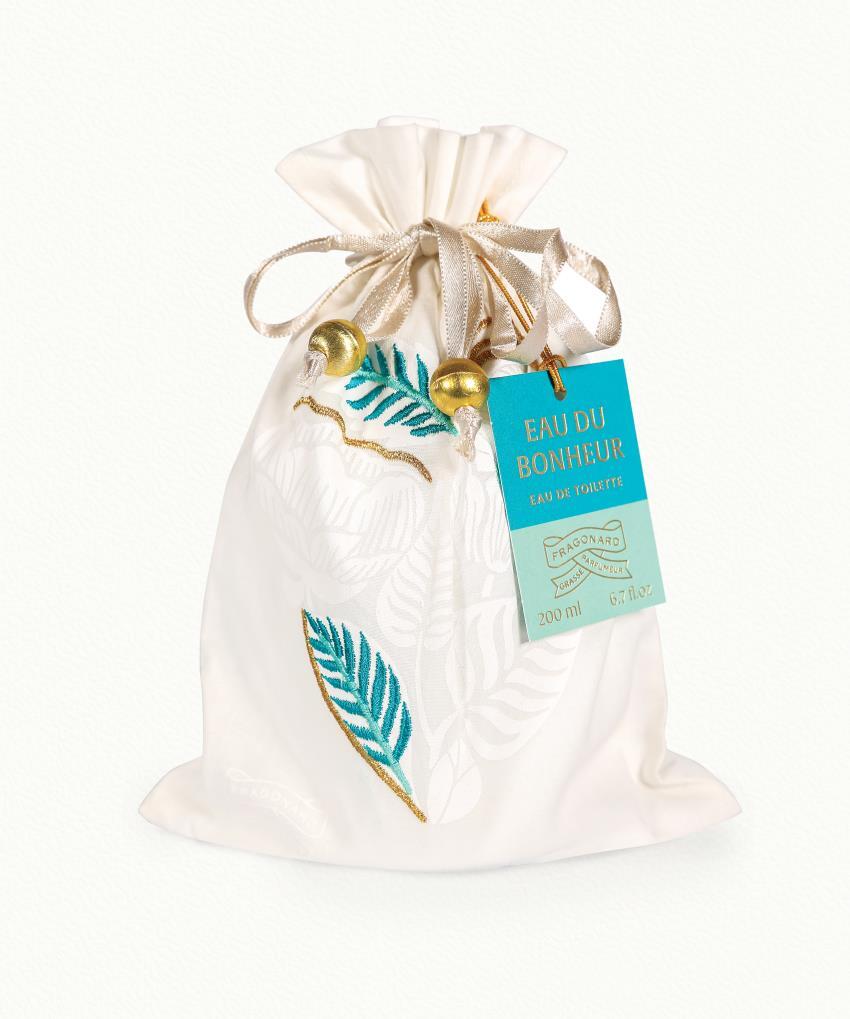 The perfume of happiness: conceived by Fragonard, this sky blue unisex Eau De Toilette blends delicate orange blossom with fulsome bitter orange, and is enveloped with hints of sandalwood, mate, and cedar. With its new organdie pouch embroidered with a flowered heart, Eau du Bonheur distils its joyous notes to express a great joie de vivre and to celebrate all our loved ones! The 200ml bottle is a refillable spray bottle. A small gesture for the planet: when you next order, why not get the 600ml refill can  so you can refill it.