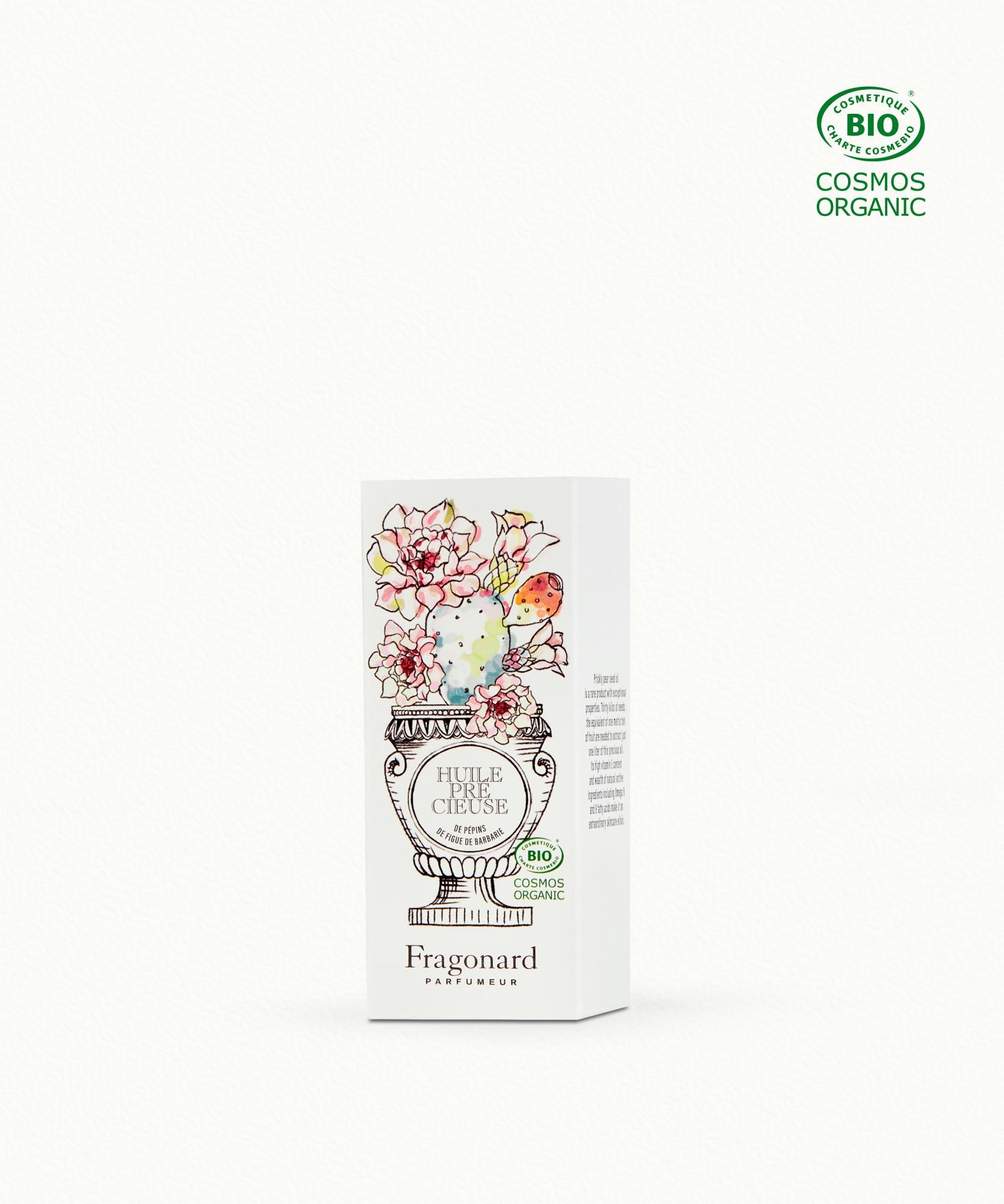 Prickly pear seed oil is a rare product with exceptional properties. Thirty kilos of seeds, or one metric ton of fruit are needed to extract just one liter of this precious oil. This oil contains large amounts of vitamin E, reputed for its antioxidant action, plus a wealth of natural active ingredients and Omega 6 and 9 essential fatty acids. A genuine fountain of youth, with a plethora of properties, it nourishes the skin deep down. A superior elixir signed by Fragonard, it is formulated solely with organic prickly pear seed oil scented with natural essences.