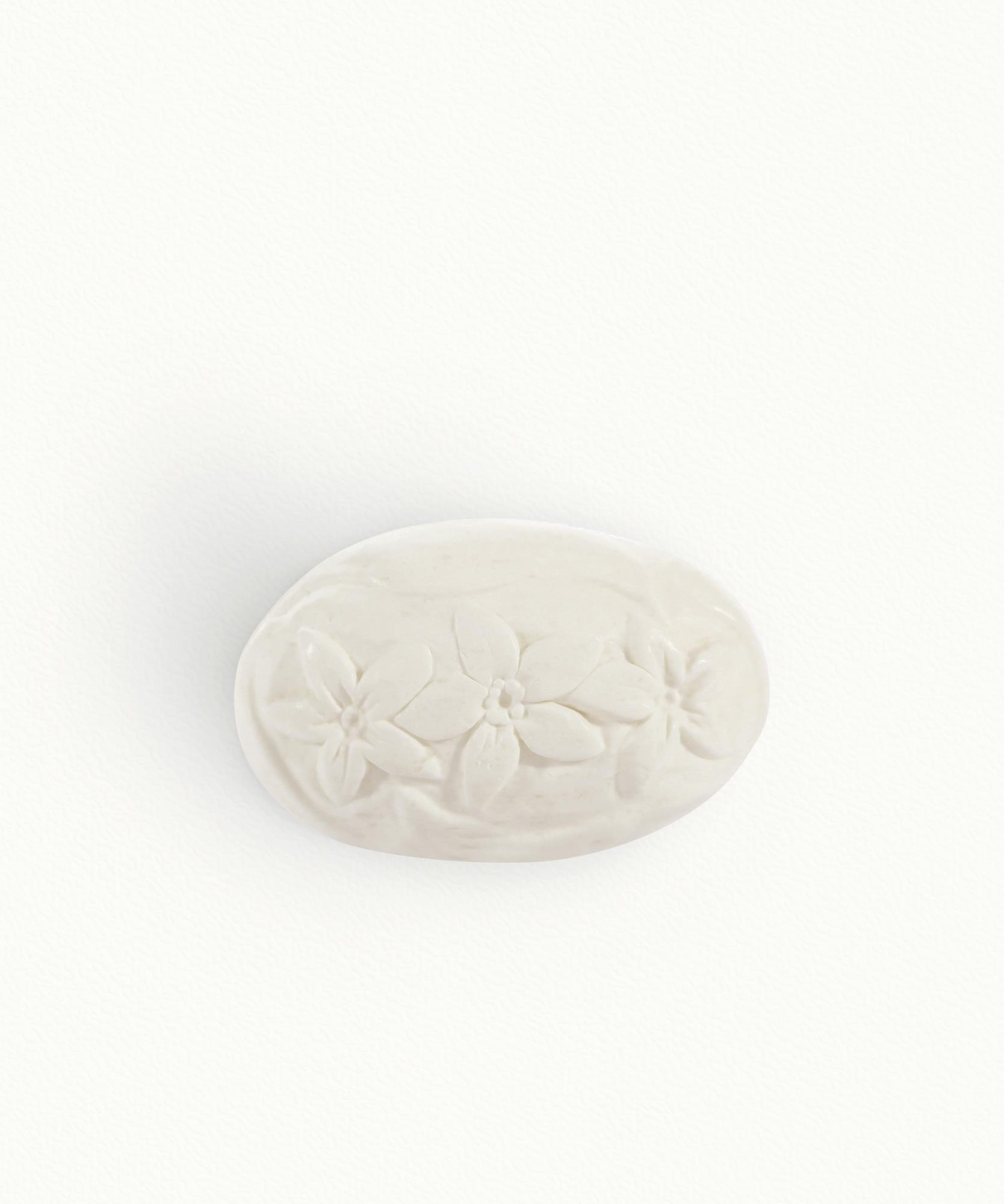 A refined duo: a scented soap accompanied by a porcelain biscuit soap dish, perfect for an elegant gift or to embellish your bathroom. Soap 150g + Soapdish 10 x 14.5 cm