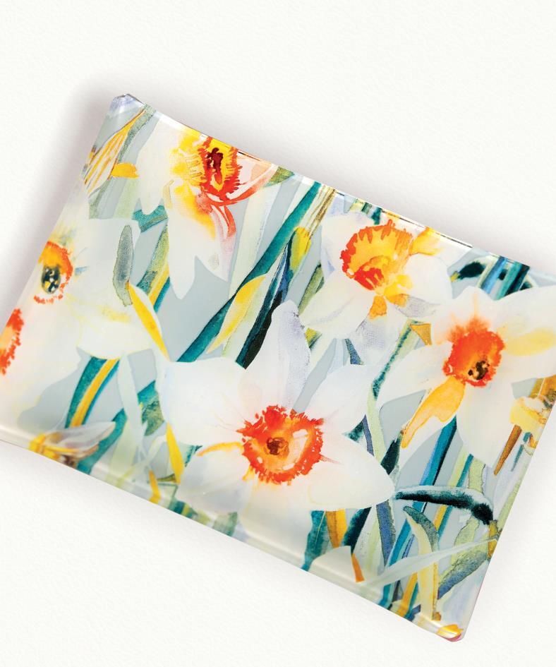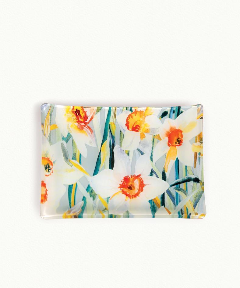To house the pebble soap, there is an elegant glass soap dish decorated with the flower of the year.