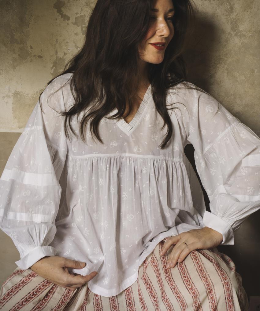 Jamie Beck delved into the historical treasures of the Musée Provençal du Costume et du Bijou in Grasse, accompanied by the collections' curators. Together, they set out to explore the archives of fabrics dating back to the 18th century. Enchanted by the richness and diversity of these fabrics from yesteryear, Jamie carefully selected prints that echoed her sensibility and love for Provençal outfits. Together with the Fragonard fashion team, she has reinterpreted and adapted these motifs to create a capsule collection. Handmade embroidery and screen-printing, as well as traditional Indian blockprint techniques, complete this limited-edition line.
