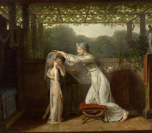 En la Galería de Su Alteza Real Madame la Duquesa de Berry, Féréol de Bonnemaison, el curador de la Duquesa, publicaba en 1822 sus pinturas de Jean-Baptiste Mallet que acompañaba con un texto laudatorio, pero también con algunos elementos biográficos erróneos que se han reelaborado y distorsionado para siempre desde entonces. Posteriormente, su obra fue incomprendida y, a menudo, reducida solo a sus primeras gouaches. Los hermanos Goncourt lo definen acertadamente como “el último representante de la gouache, de este arte muy del siglo XVIII, que no sobrevivió a la monarquía". Ahora bien, Mallet, de quien sin duda presentamos la primera hoja conservada, con fecha de 1780, trabajó efectivamente durante el reinado de Luis XVI, pero solo dejó sus pinceles bajo el de Louis-Philippe, cincuenta y cinco años después. Jean-Baptiste Mallet merecía una retrospectiva. El resultado de dos años de trabajo, debería cambiar significativamente la percepción del pintor. Su ambición es romper con la imagen de un simple “cronista de la vida social” (Paul Guth) para mostrar que su obra no solo fue mucho más rica y fructífera, sino también más comprometida, más audaz y más original. La actualización de numerosos documentos inéditos en los archivos de los Alpes Marítimos, en los Archivos Nacionales y en los Archivos de Bellas Artes de París también permite esbozar el camino de una mente muy fina, muy valiente. Si siempre es un poco complicado tratar de vincular la vida personal de un artista con los temas que trata, una serie de nuevos elementos familiares quizás ilumine sus elecciones. Nacido en Grasse dos años antes que Marguerite Gérard, de una madre de Grasse y un padre de Le Cannet, Mallet vivió, igual que ella, una infancia trastornada por el abandono temprano de su padre. En el monográfico que dedicamos a Marguerite Gérard, mostramos cómo su padre, maestro perfumista e hijo de un maestro perfumista, abandona repentinamente a su mujer e hijos para alistarse como simple soldado en la Compañía Real de África. El padre de Jean-Baptiste Mallet simplemente desapareció sin permitir que su esposa e hijos lo encontraran. Su madre, que volvió a Grasse con su familia, los Chéry, una buena familia bien establecida, crió sola a sus hijos, uno de los cuales hizo la misma elección aventurera que su padre cuando llegó a la edad adulta, cortando literalmente los lazos con sus hermanos. Por otro lado, uno de los hijos mayores decidió convertirse en pintor y entró en el estudio de Jean-Baptiste Marie Pierre a la edad de 24 años, luego dos años más tarde en Restout fils. Él había allanado el camino y su hermano menor, Jean-Baptiste, solo tenía que unirse a él para trabajar él también con Dandré-Bardon,