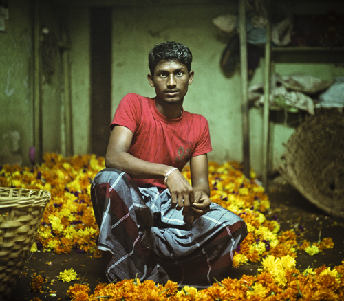 ← India, Calcuta, 2019, 70x70 cm. Mullick Ghat, el mercado de flores más grande del país.