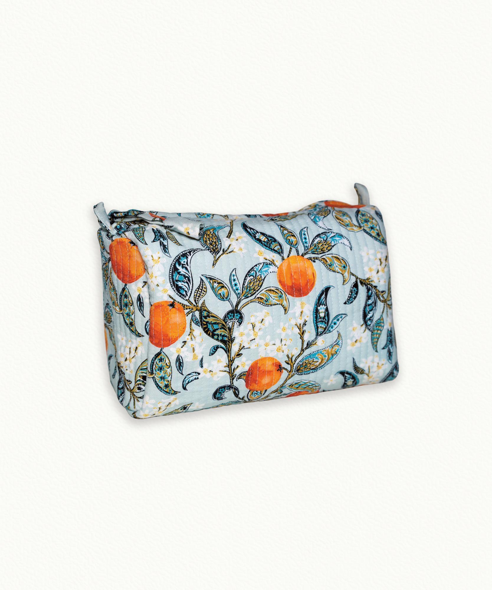 Como un homenaje al Azahar, el aroma icónico de nuestra casa, este neceser de algodón acolchado captura la suavidad de los paisajes mediterráneos con su estampado floral sobre fondo azul celeste. Su interior de nylon repelente al agua garantiza una protección y un mantenimiento óptimos en un abrir y cerrar de ojos. Disponible en tres tamaños, es tan práctico como elegante, perfecto para todas sus escapadas o para guardar cosas en casa.