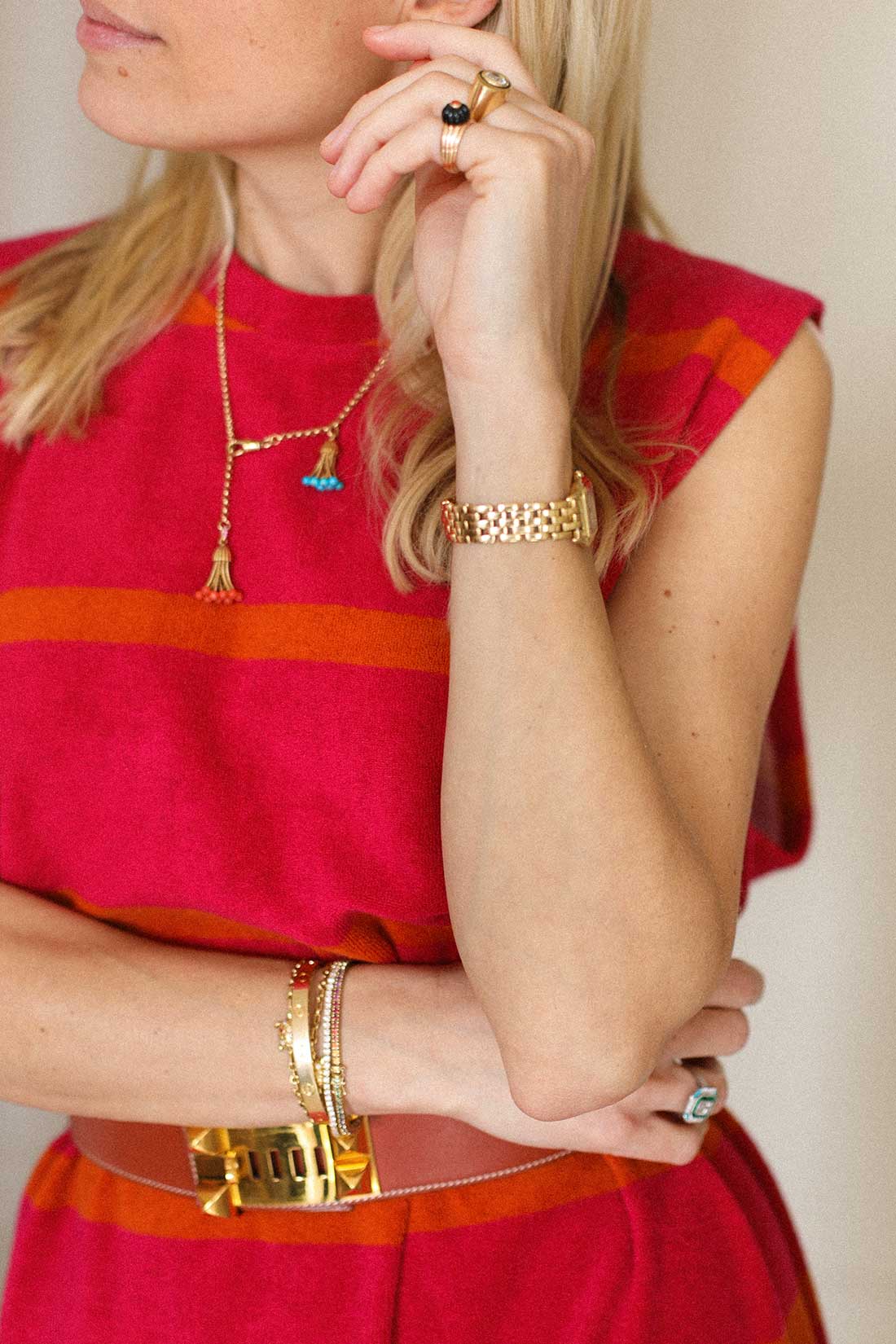 Je m'appelle Salomé Ludaescher Ricomard, j'ai 32 ans et deux enfants, Orso 4 ans et Uma 4 mois. J'habite à Montreuil depuis 2 ans dans une maison qu'on a complètement repensé et décoré nous-même après 8 mois de travaux. J'ai monté ma marque de joaillerie, Salomé Rico, il y a deux ans et demi. Passionnée par les bijoux depuis toute petite, j'ai toujours travaillé dans cet univers. Après la naissance de mon fils Orso, j'ai eu envie de retrouver plus de sens dans ma vie professionnelle et d'aller plus loin après des années d'apprentissages. J'avais déjà réalisé ma propre bague de fiançailles et travaillé pour des amies. Je voyais que le résultat plaisait, donc je me suis dit que c'était le bon moment pour me lancer. C'est comme ça que j'ai créé ma marque.