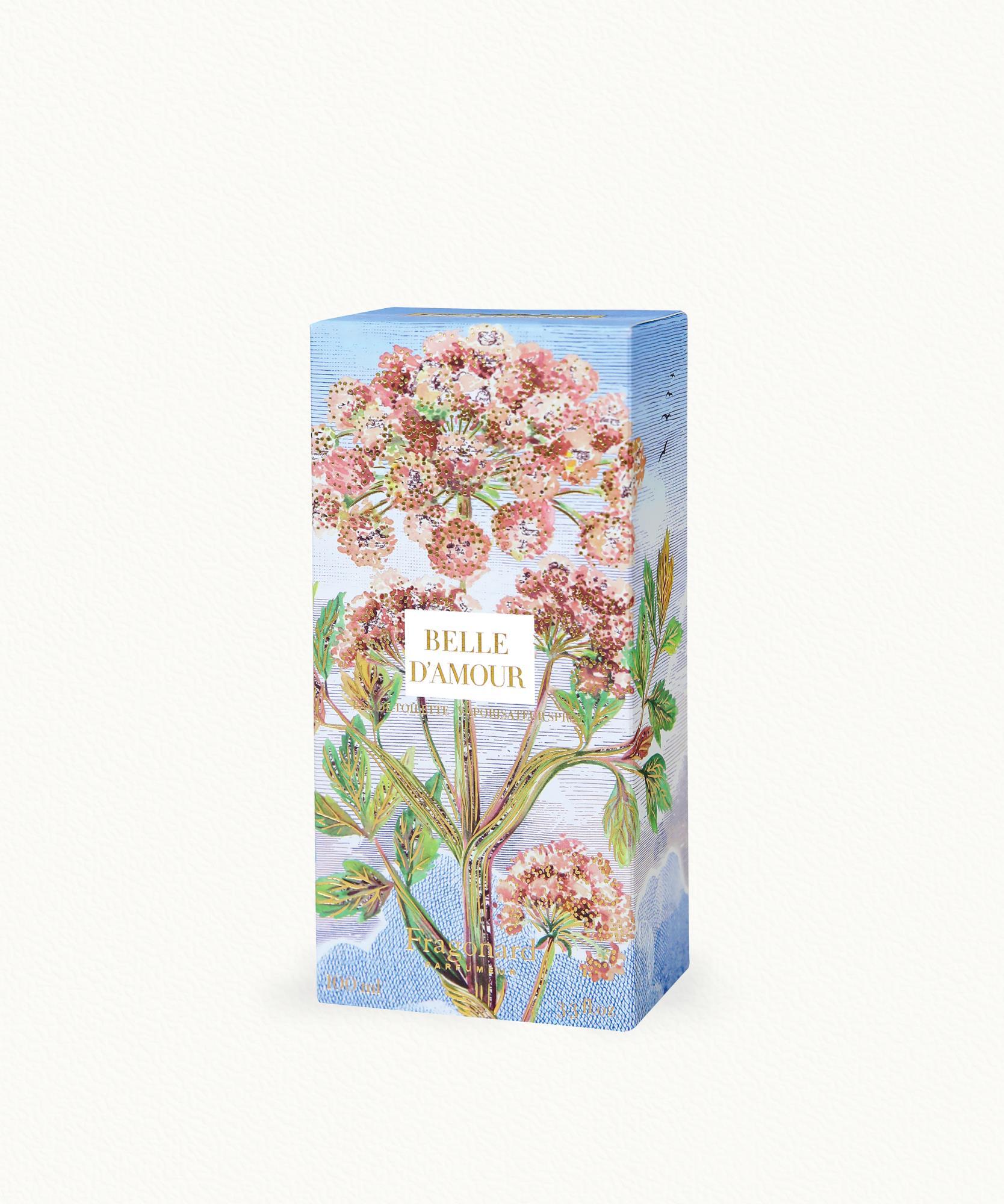 Avec Belle d'Amour, la collection d'essences méditerranéennes Les Fleurs du Parfumeur accueille l'angélique, élégamment surnommée herbe aux anges. Métamorphosée en une eau de toilette douce et sensuelle, cette fleur aux notes vertes suaves et épicées dévoile tout son charme. Pour révéler tout le potentiel olfactif de l'angélique, cet accord gourmand est ponctué de cassis, vanille et d'un bouquet d'oeillets d'Inde. La couleur de l'eau de toilette peut varier et évoluer dans le temps.
