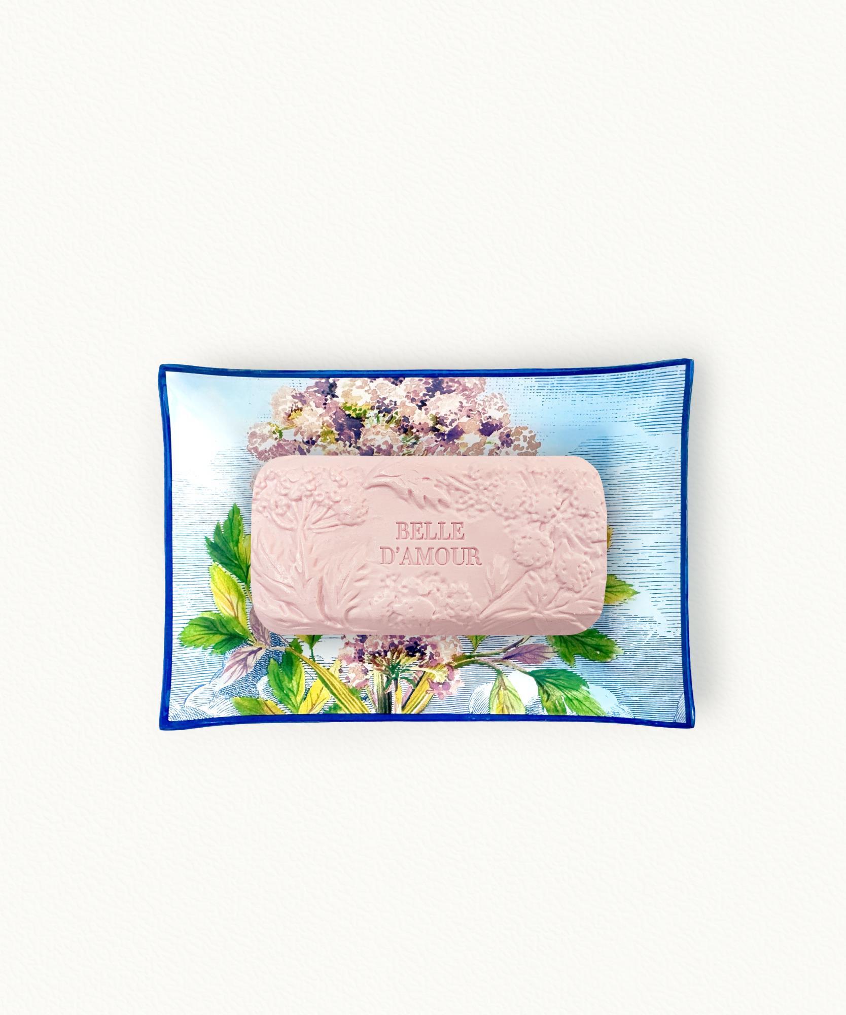 Habillé de son poétique motif floral hommage à l'angélique, ce porte savon coloré accueille le savon parfumé Belle d'Amour élégamment gravé de cette fleur délicate surnommée herbe aux anges. Ce coffret vous permettra d'apprécier le sillage subtil et gourmand de Belle d'Amour à chaque passage dans votre salle de bain. Ce duo savon et porte savon est également une idée cadeau parfumée attentionnée.