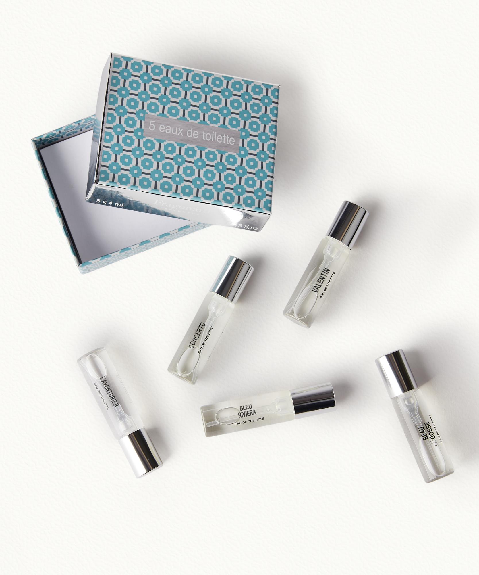 Découvrez votre nouveau coffret Homme composé de 5 vaporisateurs Beau Gosse, L'Aventurier, Valentin, Bleu Riviera et Concerto.