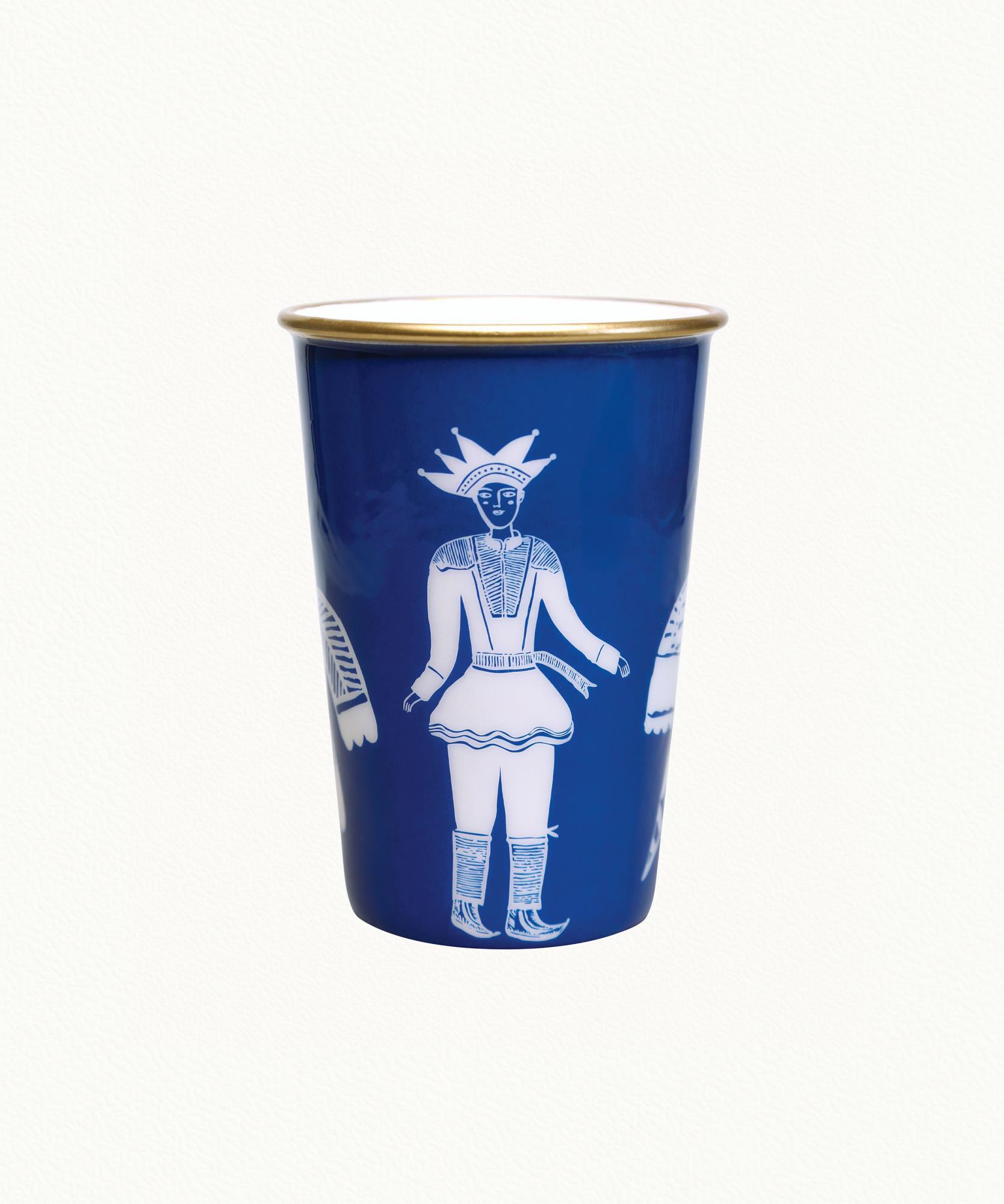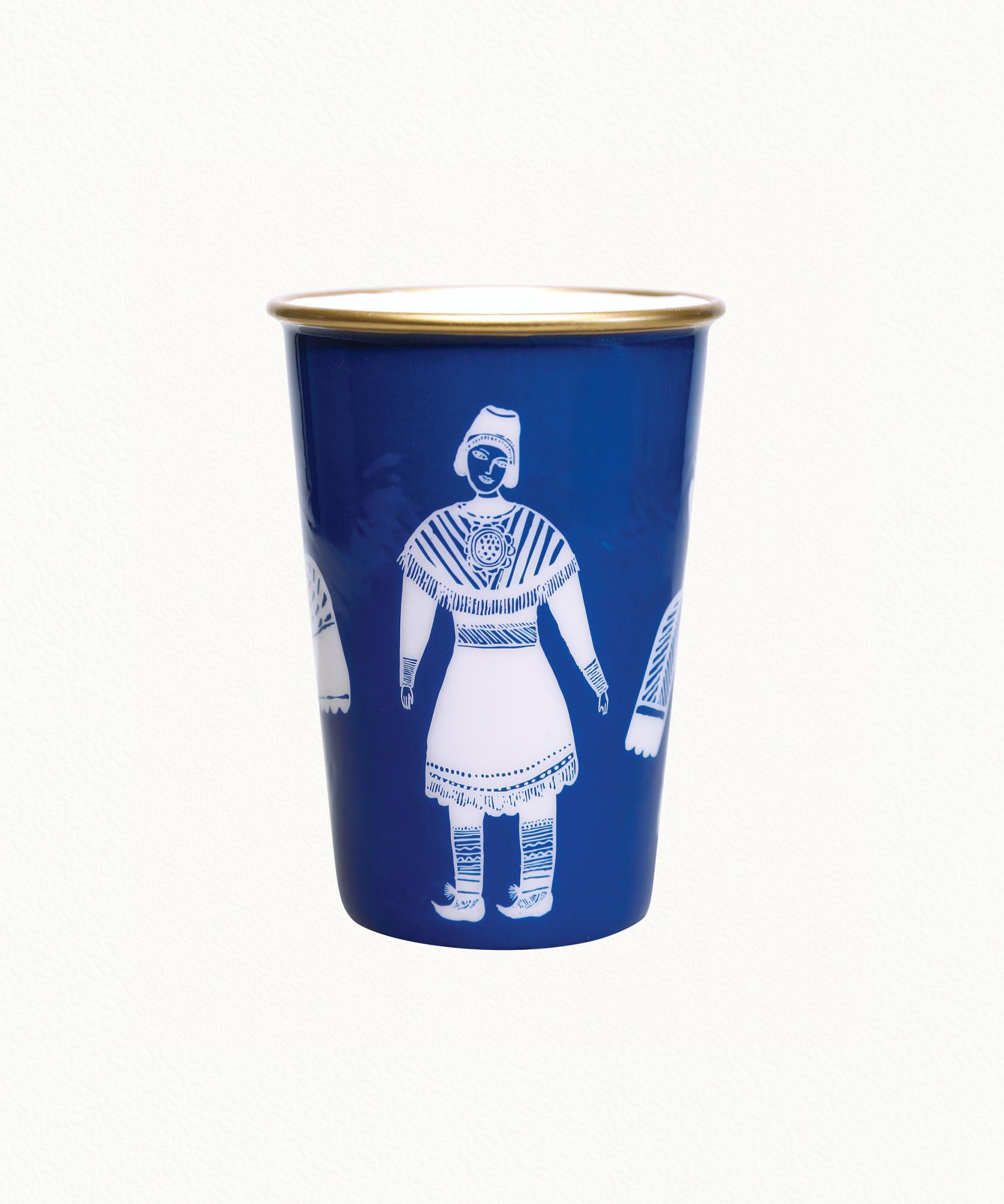 Sur les contours de ce vase d'un bleu lumineux apparaissent les silhouettes blanches des Samis, le dernier peuple autochtone de Laponie. Comme une invitation à plonger dans la magie des contes lapons, ce petit vase en métal égayera votre décoration d'intérieur. Fleurs fraîches, fleurs séchées seront mis à l'honneur dans cet objet de décoration plein de poésie.