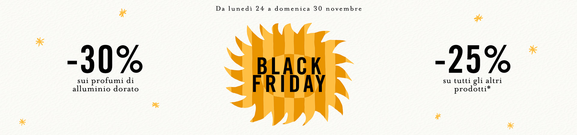 Black Friday = Venerdì nero*Offerta valida dal 11/24/2025 al 11/30/2025 sui prodotti disponibili sul sito al momento dell'offerta. Non valida per ordini già convalidati, inviati, effettuati o in preparazione prima del 11/24/2025. L'offerta di sconto è valida solo per le consegne negli Stati Uniti. Spese di spedizione ridotte a partire da $149 di acquisti o più dopo gli sconti, solo per ordini spediti negli Stati Uniti, esclusi Hawaii, Porto Rico e Alaska. Valido solo per ordini effettuati su www.fragonard.com e solo con il codice BLACKUSA25. Se il regalo non è disponibile, riceverete un regalo di valore uguale o superiore. Non è possibile, per lo stesso ordine, ricevere regali relativi a due offerte o newsletter diverse. Non valido nelle nostre fabbriche e negozi. L'offerta è personale e non trasferibile o cedibile. Può essere utilizzata solo una volta. Tutti gli acquisti sono soggetti all'autorizzazione bancaria prima della lavorazione. Solo gli acquisti autorizzati saranno lavorati e spediti. Contattaci via email: fragonard.usa@fragonard.com Per posta: Servizio Clienti Fragonard - BP 34240 - 06131 GRASSE Cedex 1 Francia Telefono: 0033 (0) 4 92 42 34 34